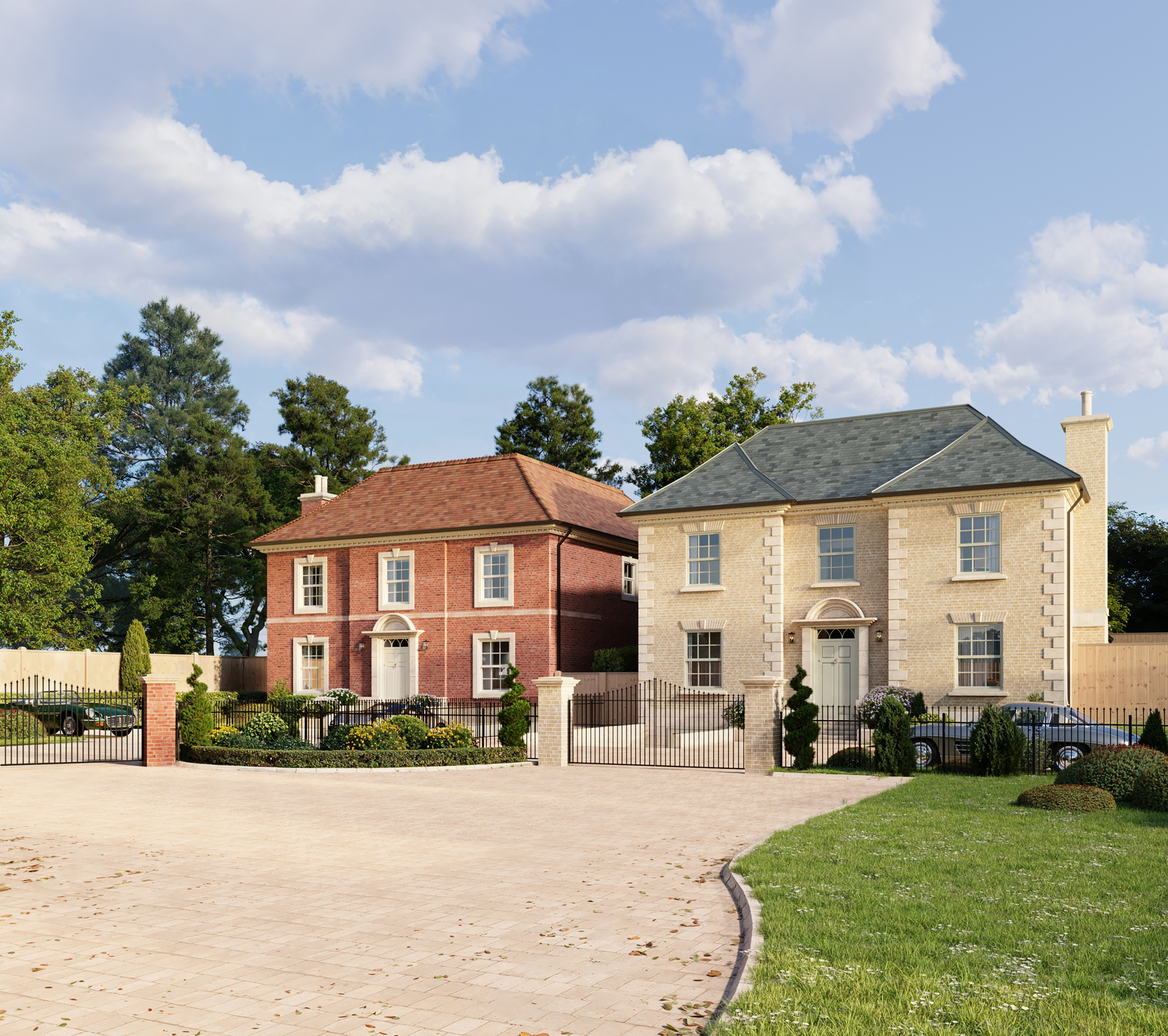 Located in the highly sought-after Wrens Hill, our Dovetails development offers two exquisitely designed homes brimming with architectural detail and timeless elegance. Set back from the road, each residence is accessed via a long, sweeping shared drive that leads to individual gated entrances and private driveways, complete with lower level garages for added convenience and security. These impressive five-bedroom, five-bathroom homes are thoughtfully arranged over three expansive floors. The ground floor boasts generous, open-plan living areas designed for both family life and entertaining, while the upper floors provide spacious bedrooms and luxurious bathrooms. Anticipated for completion in Q3 2026, Dovetails promises a rare blend of privacy, sophistication, and modern living in one of the most exclusive locations.